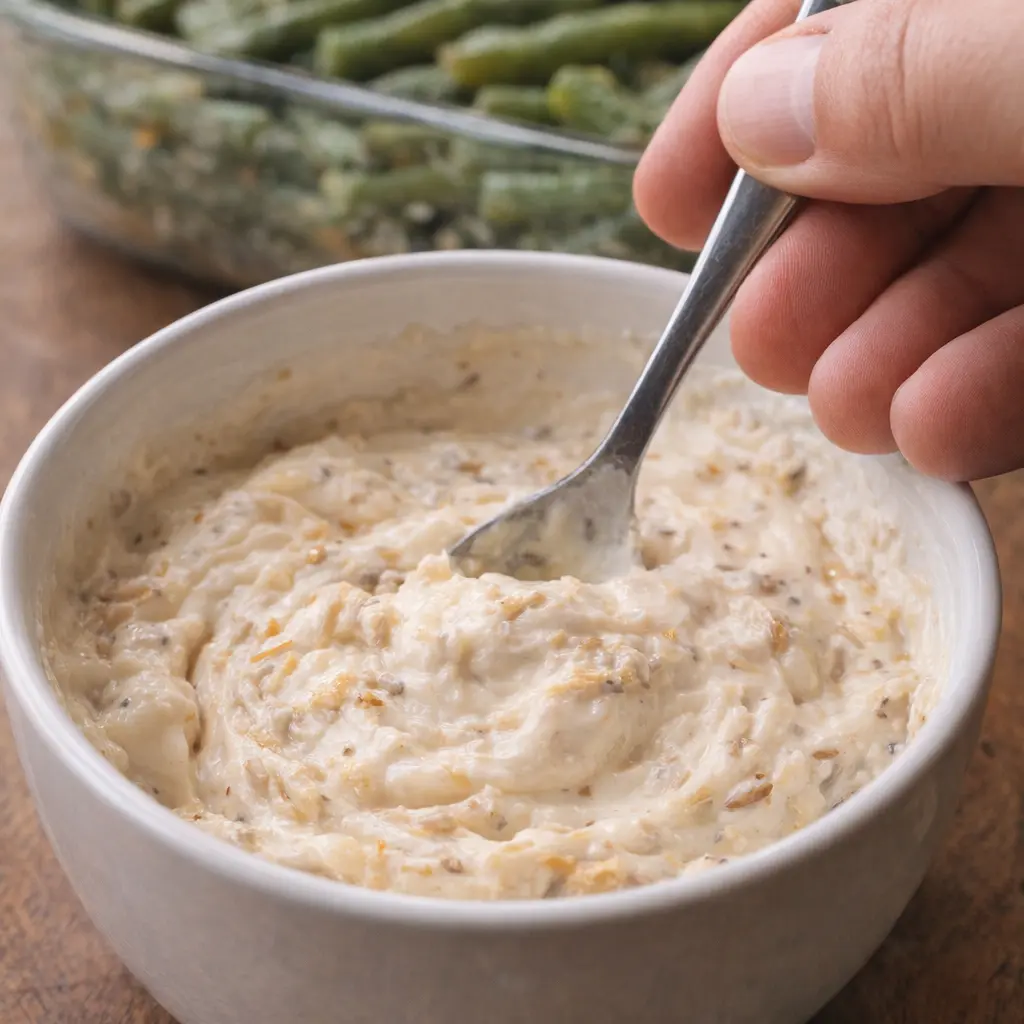In a small bowl, stir together the condensed cream of mushroom soup and the dry onion soup mix until well combined. It will be thick and very flavorful.